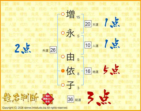 増(15画)永(5画) 由(5画)依(8画)子(3画)