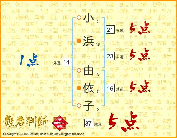 小(3画)浜(18画) 由(5画)依(8画)子(3画)