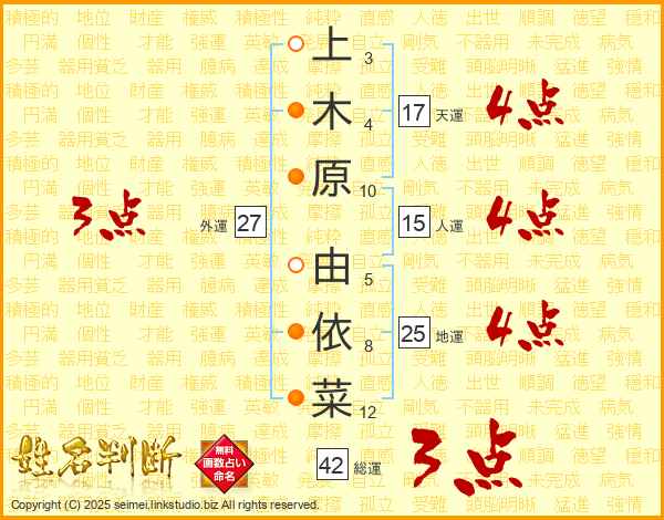 上木原由依菜さんの天運は17画の4点!
