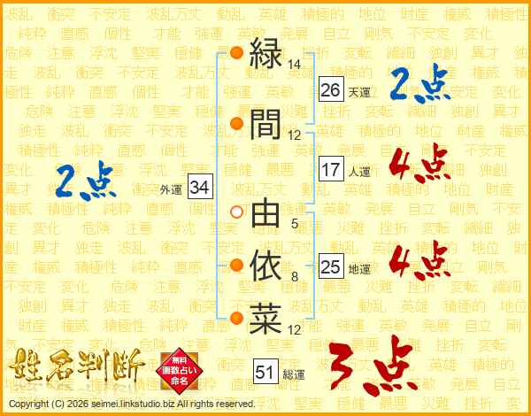緑間由依菜さんの総運は51画の3点!