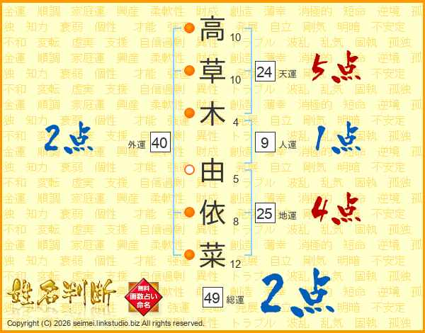 高草木由依菜さんの総運は49画の2点!