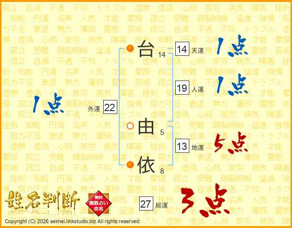 台由依さんの天運は14画の1点!