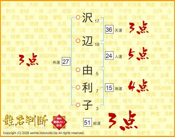 沢辺由利子さんの総運は51画の3点!