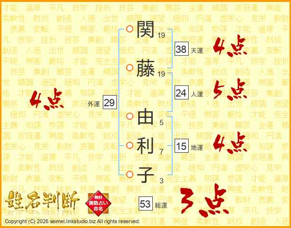 関藤由利子さんの総運は53画の3点!