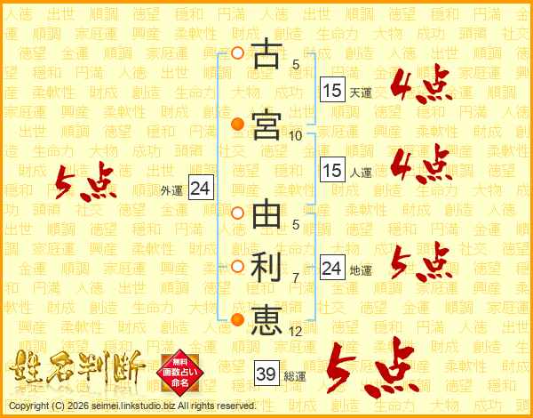 古宮由利恵さんの総運は39画の5点!
