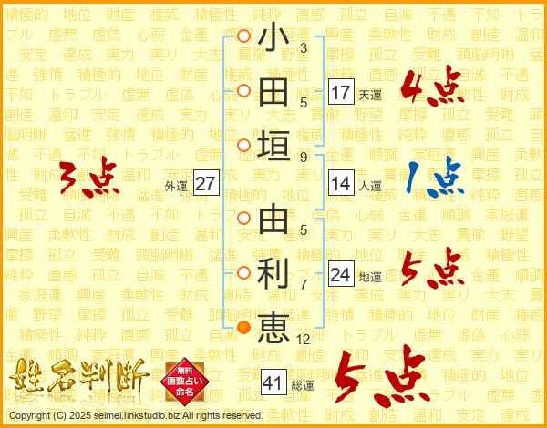 小田垣由利恵さんの天運は17画の4点!