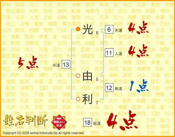 光由利さんの総運は18画の4点!