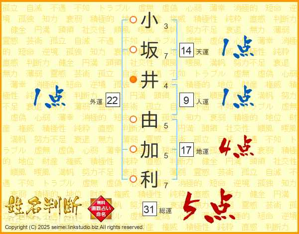 小坂井由加利さんの総運は31画の5点!