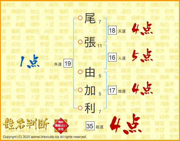 尾張由加利さんの総運は35画の4点!
