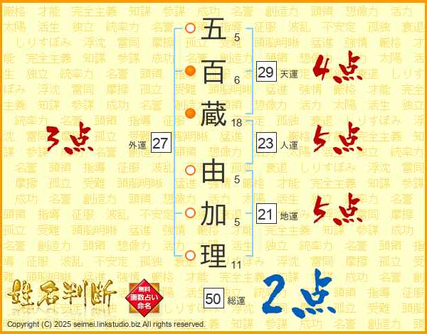 五百蔵由加理さんの天運は29画の4点!