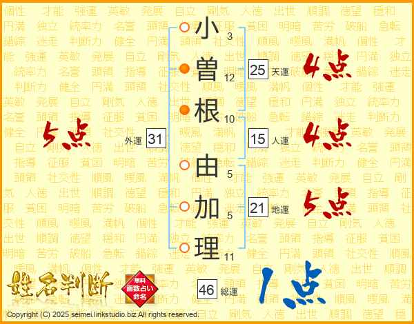 小曽根由加理さんの総運は46画の1点!