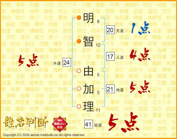 明智由加理さんの外運は24画の5点!