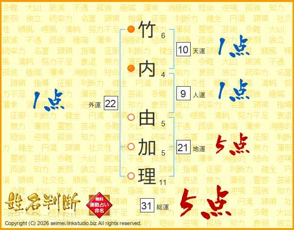 竹内由加理さんの総運は31画の5点!