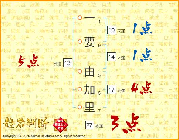 一要由加里さんの地運は17画の4点!
