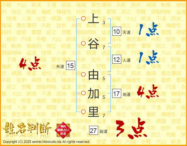 上(3画)谷(7画) 由(5画)加(5画)里(7画)