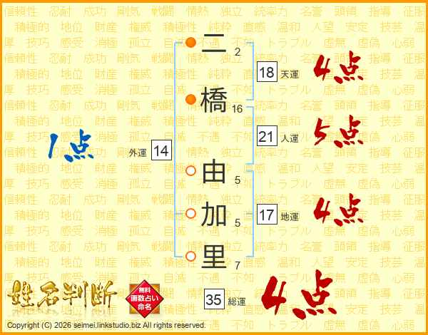 二橋由加里さんの地運は17画の4点!