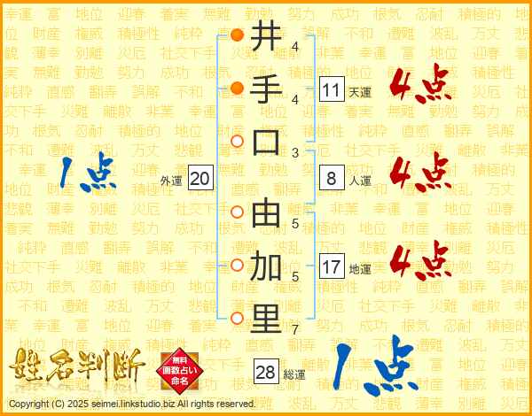 井(4画)手(4画)口(3画)  由(5画)加(5画)里(7画)