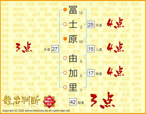 冨士原由加里さんの天運は25画の4点
