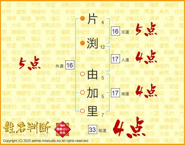 片渕由加里さんの総運は33画の4点