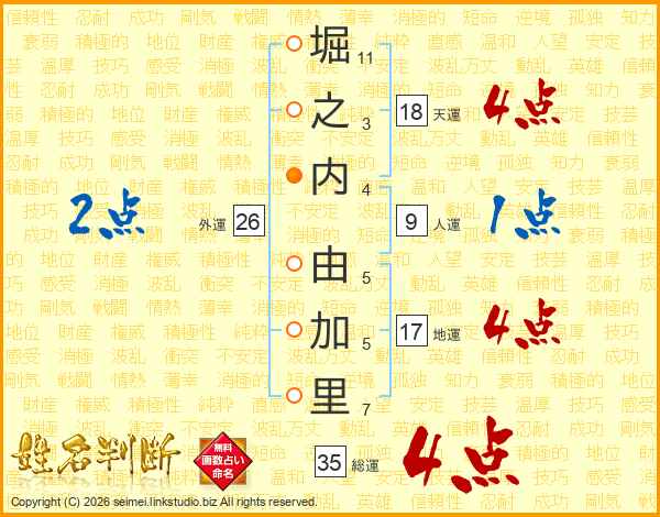 堀之内由加里さんの天運は18画の4点!