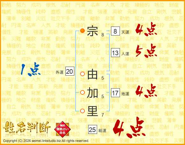 宗由加里さんの総運は25画の4点!