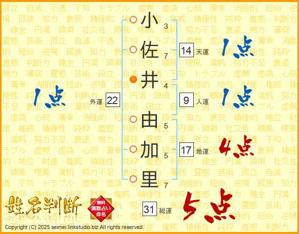 小佐井由加里さんの総運は31画の5点!