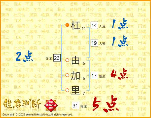 杠由加里さんの総運は31画の5点!