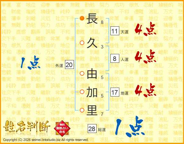長久由加里さんの天運は11画の4点!