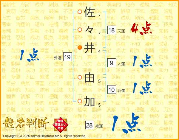 佐々井由加さんの総運は28画の1点!