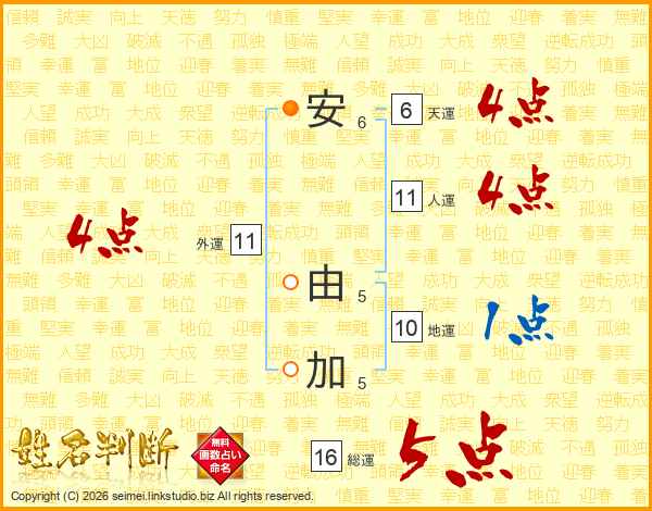 安由加さんの総運は16画の5点!