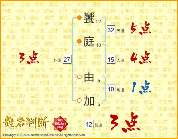 饗庭由加さんの人運は15画の4点!