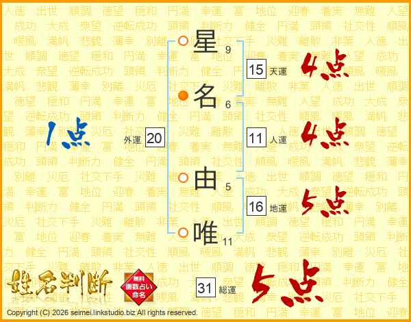 星名由唯さんの総運は31画の5点!