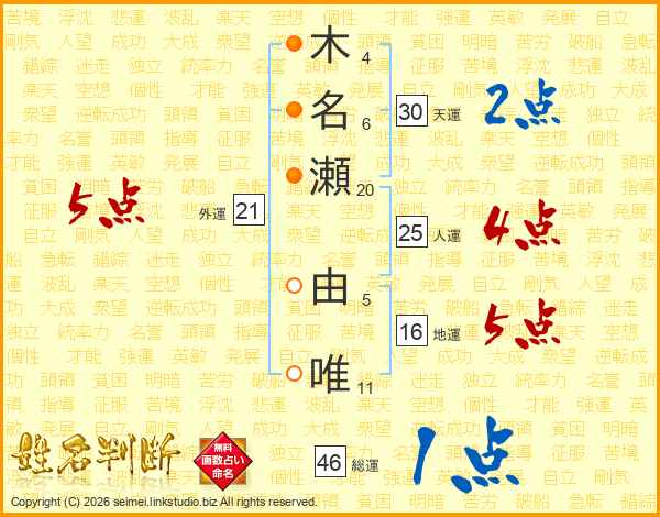 木名瀬由唯さんの人運は25画の4点!