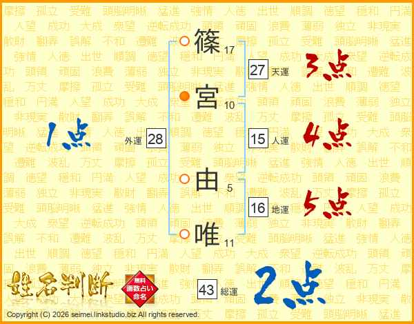 篠宮由唯さんの天運は27画の3点!