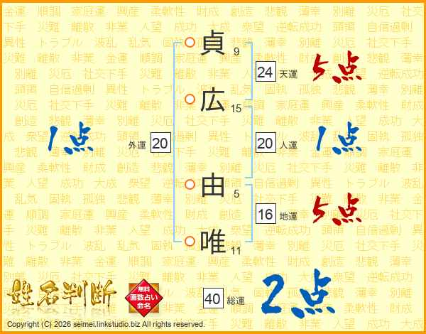 貞広由唯さんの総運は40画の2点!