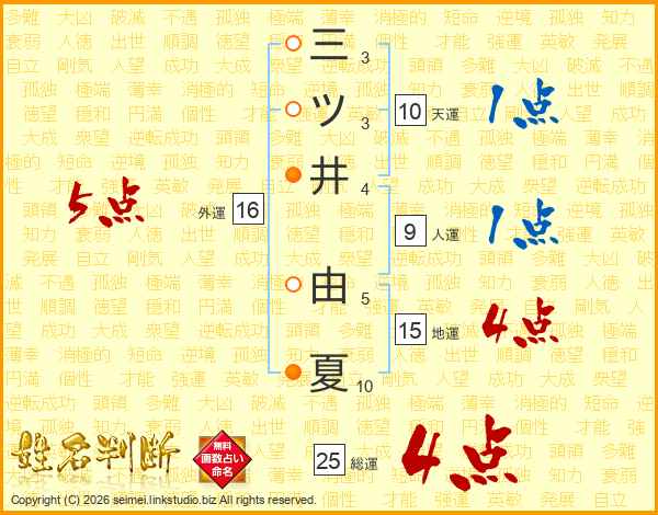 三ツ井由夏さんの総運は25画の4点!