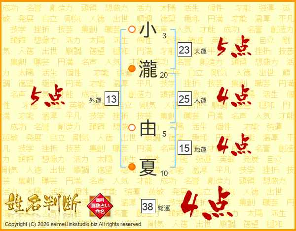小瀧由夏さんの総運は38画の4点!