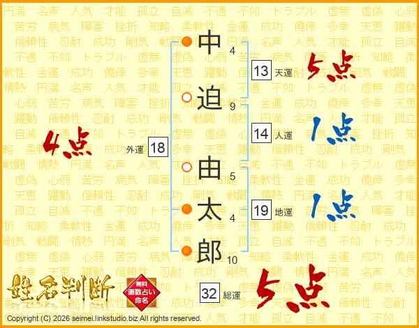 中迫由太郎さんの天運は13画の5点!