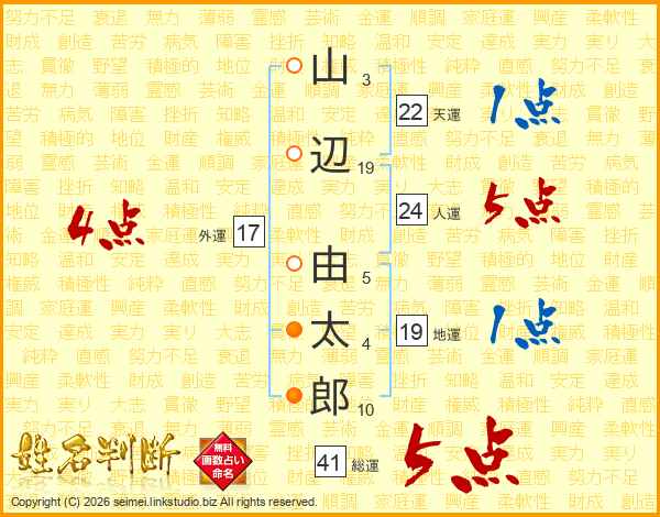 山辺由太郎さんの総運は41画の5点!