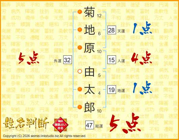 菊地原由太郎さんの総運は47画の5点!