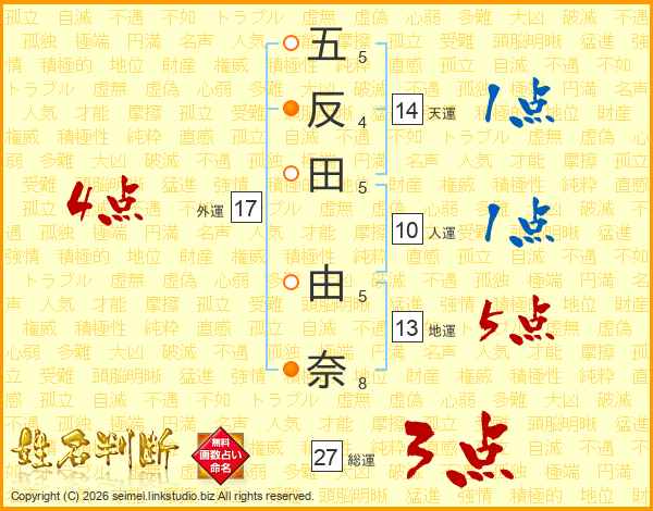 五反田由奈さんの外運は17画の4点!