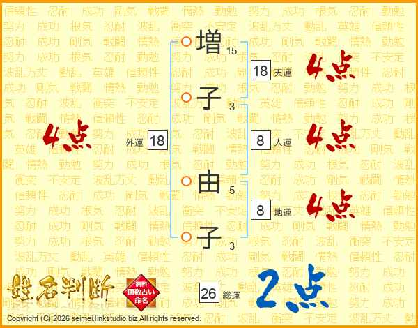 増子由子さんの総運は26画の2点!