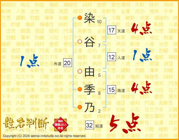 染谷由季乃さんの総運は32画の5点!