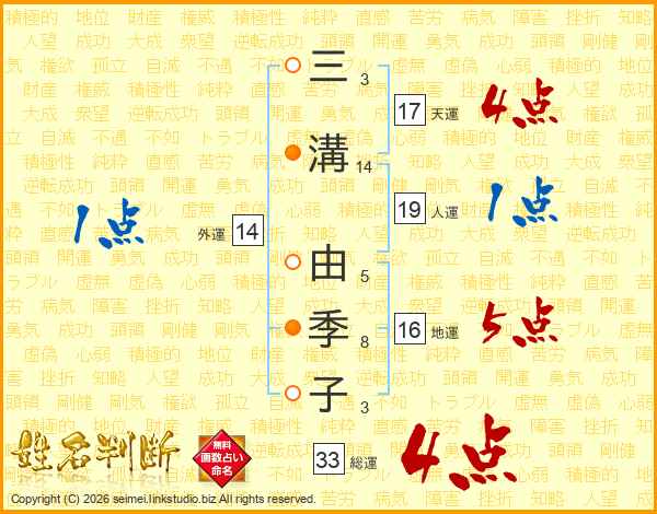 三溝由季子さんの総運は33画の4点!