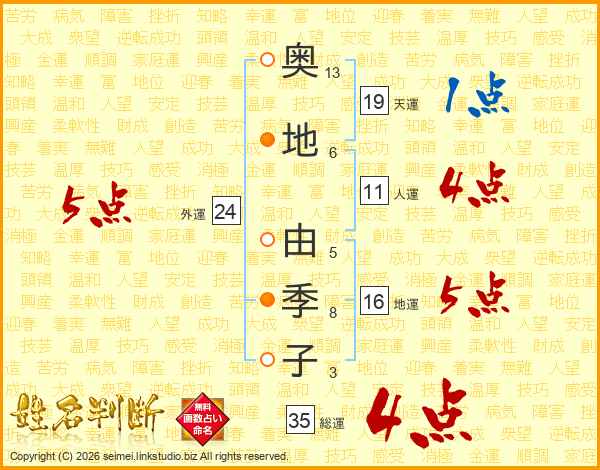 奥地由季子さんの総運は35画の4点!