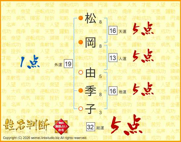 松岡由季子さんの総運は32画の5点!