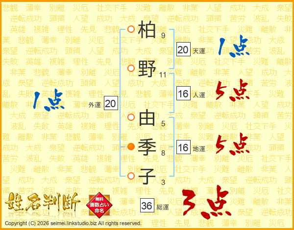 柏野由季子さんの総運は36画の3点!