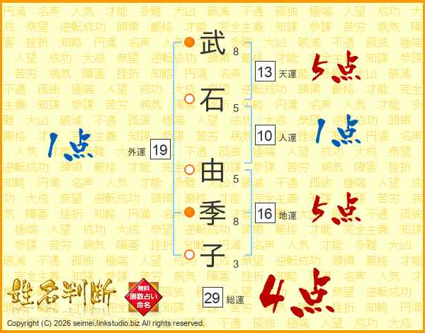 武石由季子さんの総運は29画の4点!