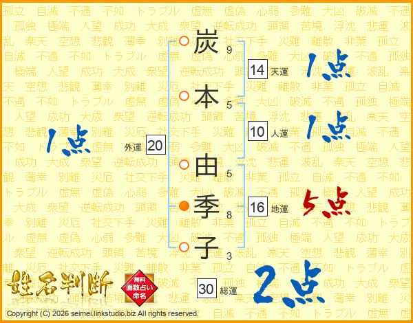 炭本由季子さんの天運は14画の1点!
