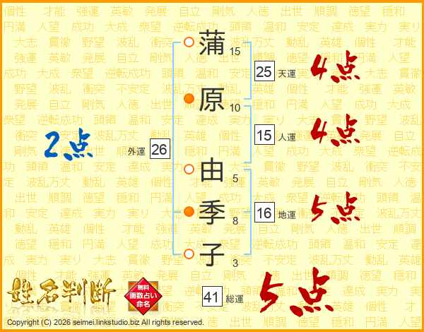 蒲原由季子さんの総運は41画の5点!